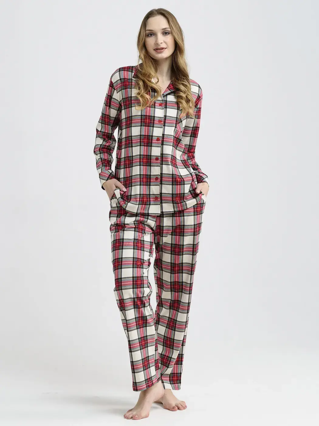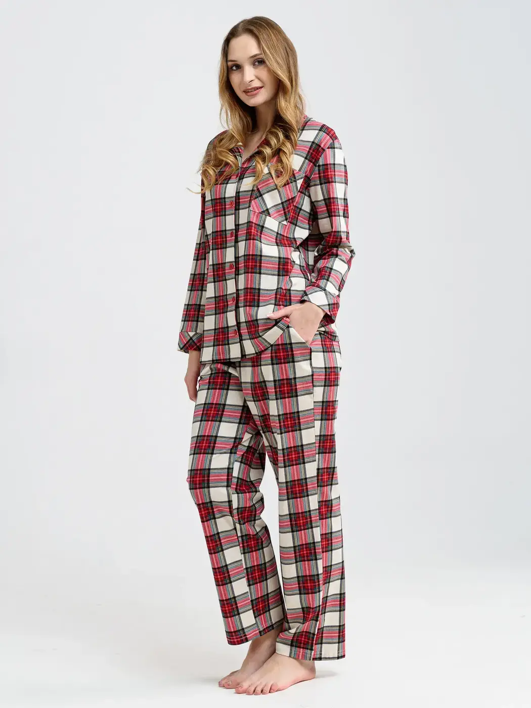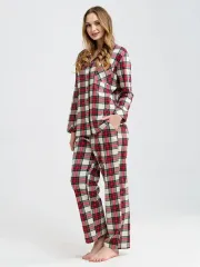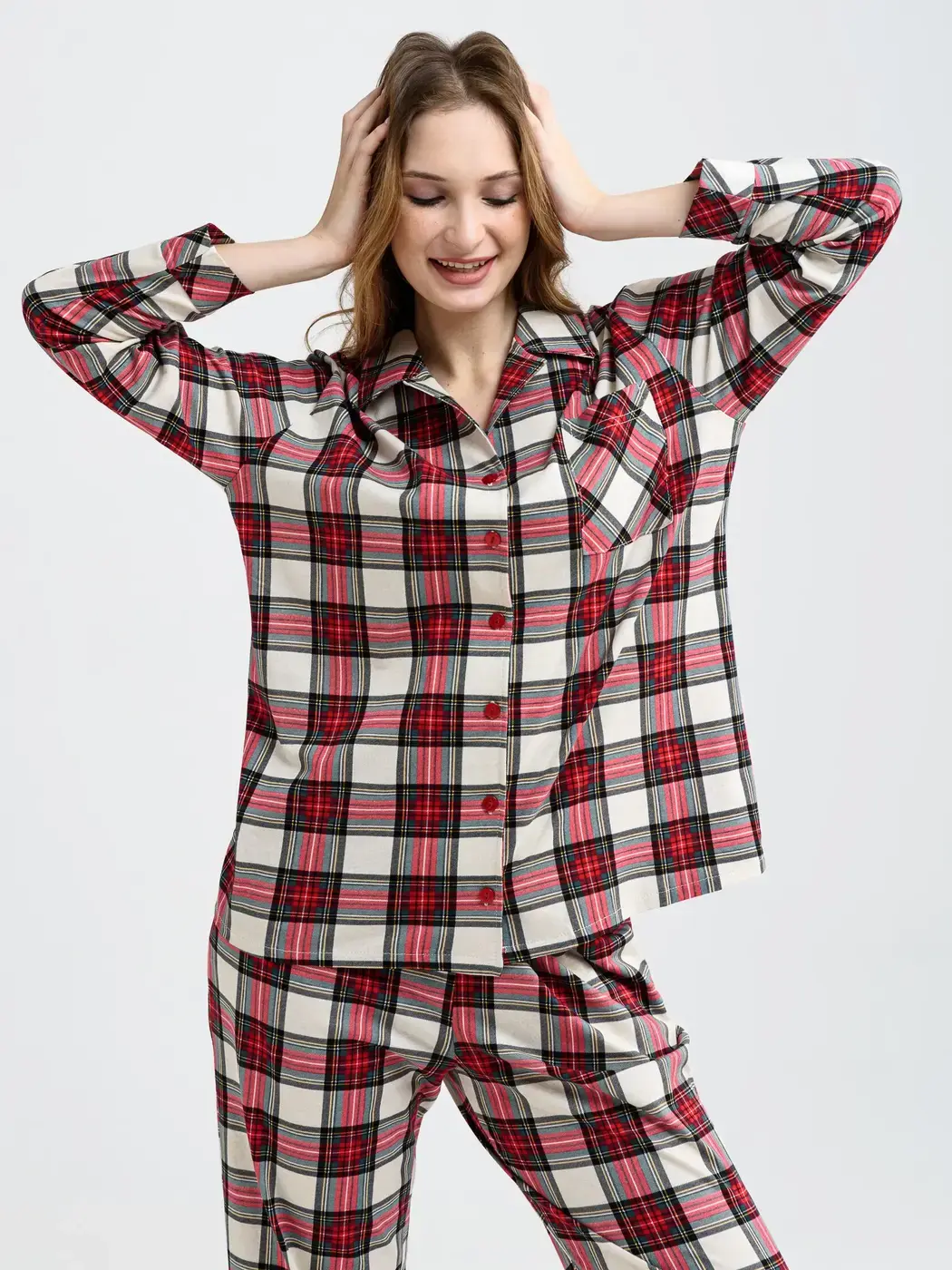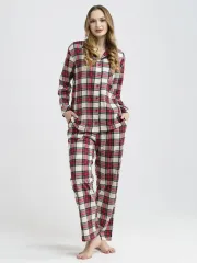 Пижама женская "Комфорт" Рубашка (д/р) и брюки (классическая) Артикул: 2005-К (красно-бежевый)