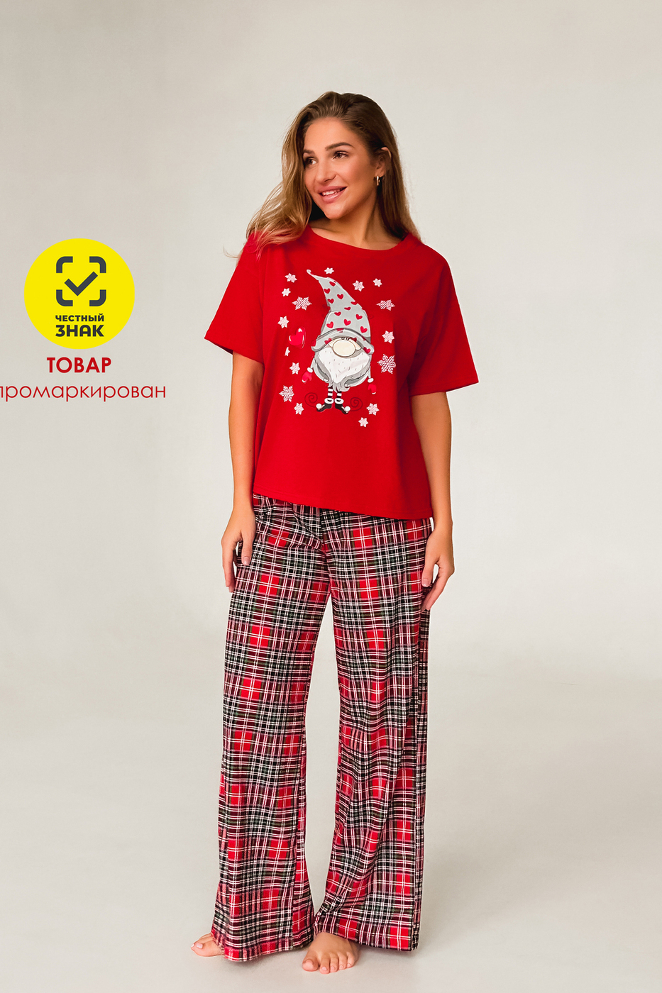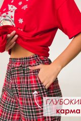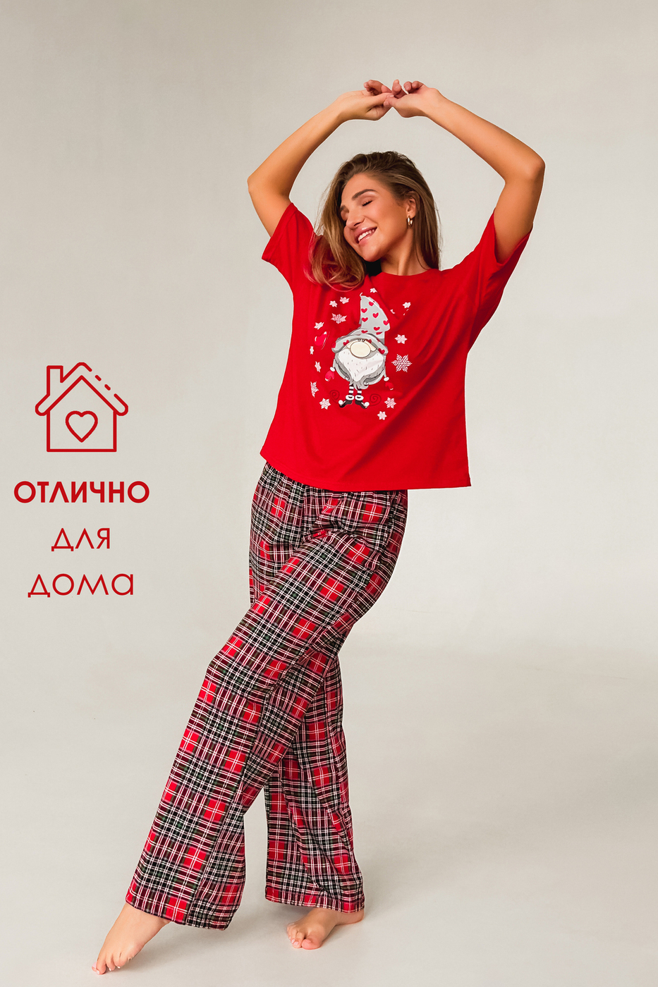 Ткань кулирка Состав 100% хлопок Описание Женская пижама с брюками - идеальный выбор для комфортного отдыха дома. Этот домашний костюм сочетает в себе уют, качество и стиль, делая его незаменимой частью гардероба каждой женщины. Легкая пижама выполнена из 100% хлопка - натурального, дышащего материала, который обеспечивает оптимальную температуру тела во время сна. Хлопковая ткань из Турции приятна на ощупь и не вызывает раздражения. Брюки в клетку и полоску придают пижаме женственность и элегантность, а футболка дополняет образ своим оверсайз кроем и стильным принтом. Такой домашний костюм не только удобен в повседневной жизни, но и выглядит модно и аккуратно. Пижама для сна представлена в больших размерах, что позволяет каждой женщине подобрать оптимальный вариант посадки, подходит для полных и стройных женщин, высокого и невысокого роста. Этот домашний комплект может быть использован в повседневной жизни для дома или даже во время беременности. Удобный пояс на широкой резинке обеспечивает надежную фиксацию, не стесняя движения. Мягкая ткань не сковывает движений, обеспечивая ощущение свободы и комфорта на протяжении всей ночи. Модный комплект это отличный подарок на любой праздник маме, бабушке, сестре, дочке, подруги, коллеге, на выписку, на день рождения, Новый год, Рождество, 8 марта. Костюм идёт в размер и для вашего удобства мы разработали размерную сетку, она именно для нашей модели. Посмотреть её можно пролистав фото (второй слайд). А те, кто любит стиль oversize можно выбрать на размер больше. Женская пижама с брюками больших размеров - это не просто одежда для дома, это идеальное сочетание стиля, комфорта и качества. Почувствуйте себя уютно и модно даже во время отдыха! Пижама женская не линяет и не теряет форму, если соблюдать правила ухода. Купить пижаму женскую недорого на Натали брэнда Iv-trik-stail ваш правильный выбор, желаем приятных покупок!