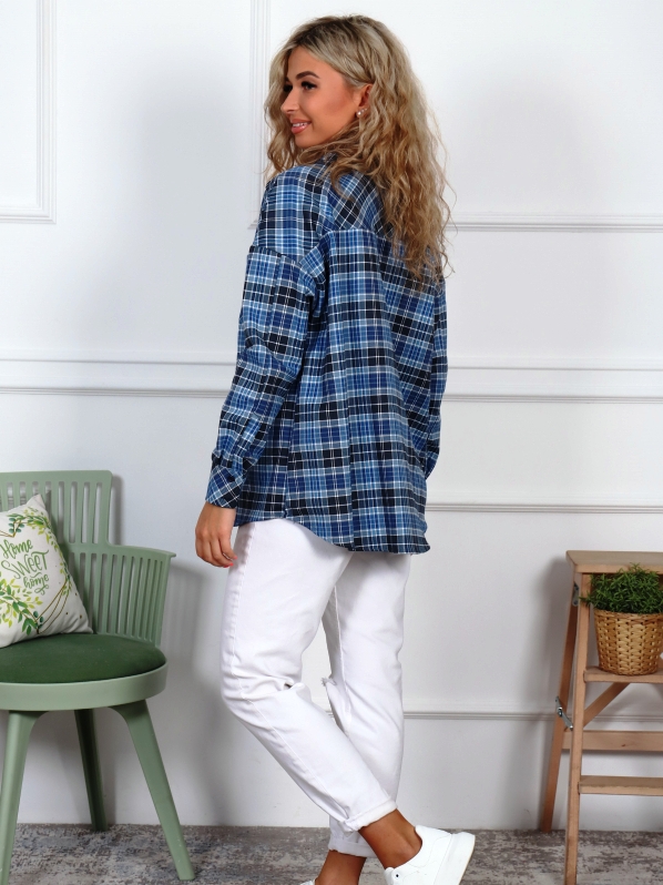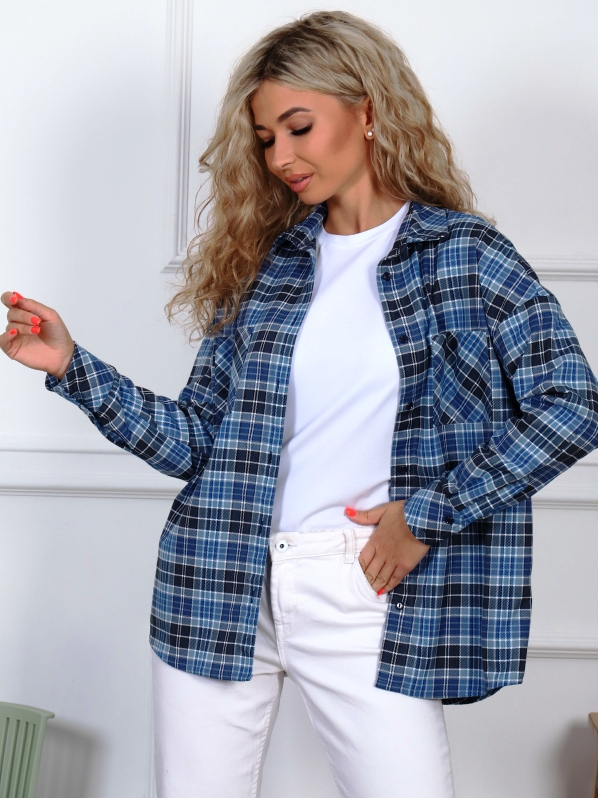 Описание: В клетку женская рубашка-оверсайз, силуэт прямой.  Цвет и рисунок: согласно фото Ткань: фуле, хлопок 100%