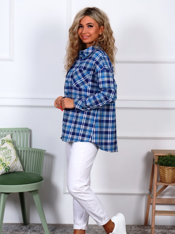 Описание: В клетку женская рубашка-оверсайз, силуэт прямой.  Цвет и рисунок: согласно фото Ткань: фуле, хлопок 100%
