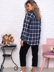 Рубашка женская 0307, Фуле, оверсайз, длинный рукав, (сине-красный)