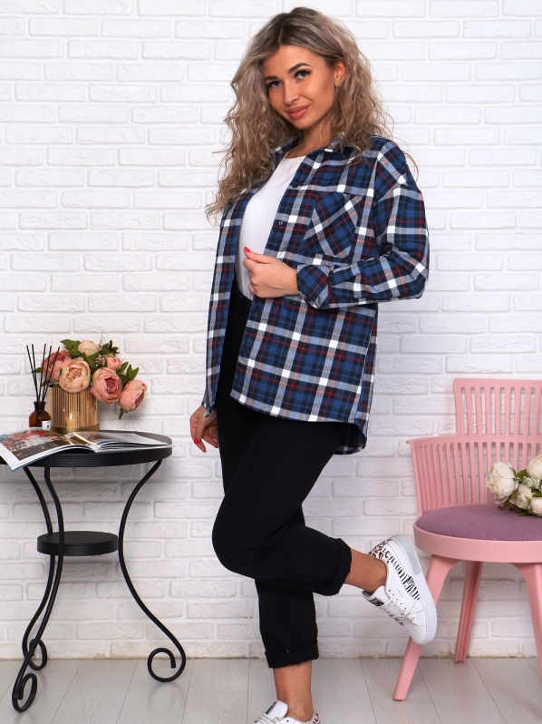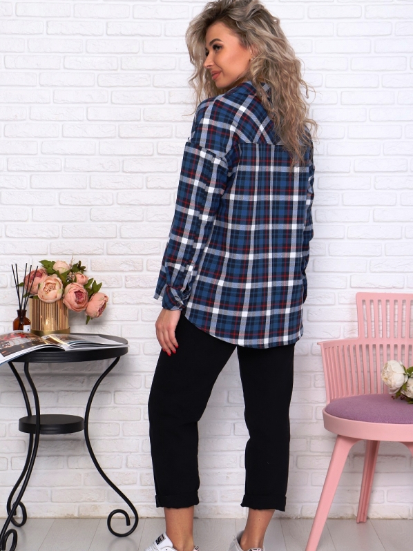Описание: В клетку женская рубашка-оверсайз, силуэт прямой.  Цвет и рисунок: согласно фото Ткань: фуле, хлопок 100%
