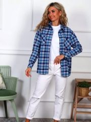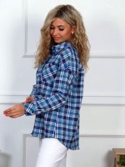 Рубашка женская 0307, Фуле, оверсайз, длинный рукав (синий)