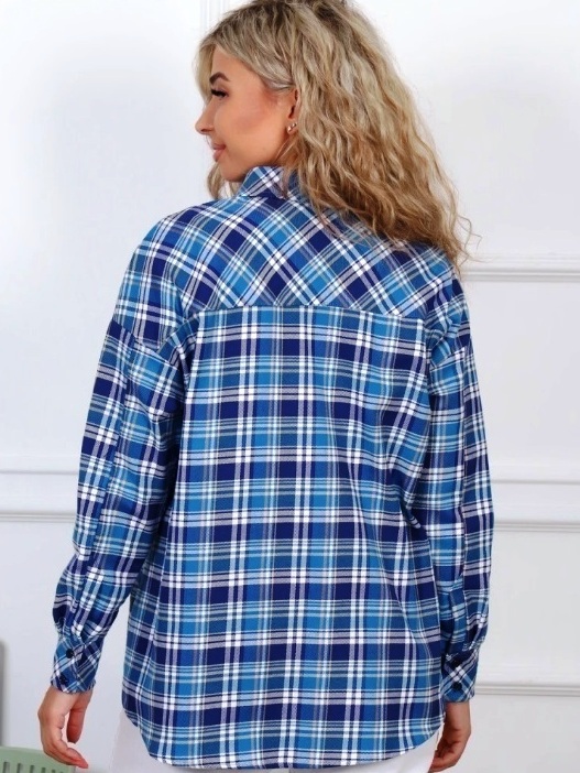 Рубашка женская 0307, Фуле, оверсайз, длинный рукав (синий)