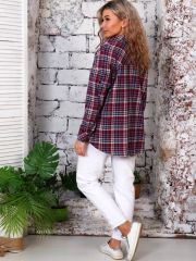 Описание: В клетку женская рубашка-оверсайз, силуэт прямой.  Цвет и рисунок: согласно фото Ткань: фуле, хлопок 100%