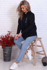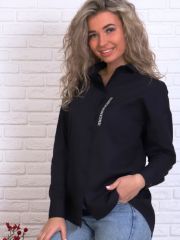 Рубашка женская 0314, оверсайз, с лентой, черная