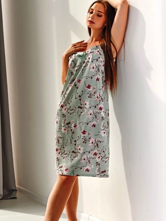 Сорочка ночная женская "Полянка" (бретель) (зеленый)