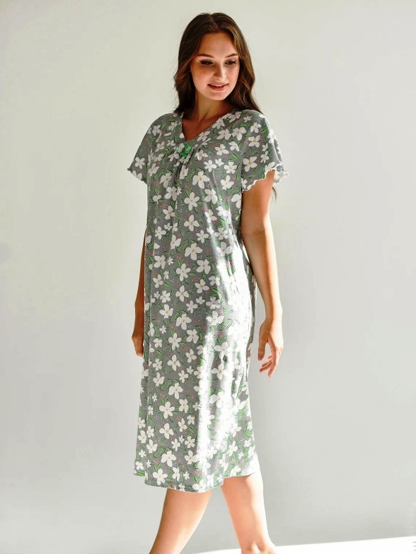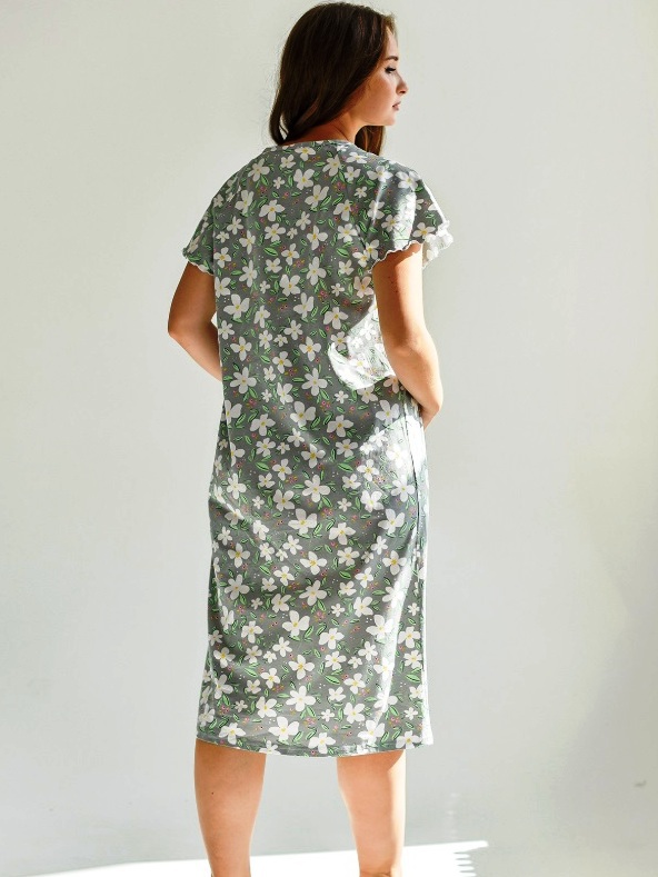 Сорочка ночная женская "Полянка" (рукав) (графит)