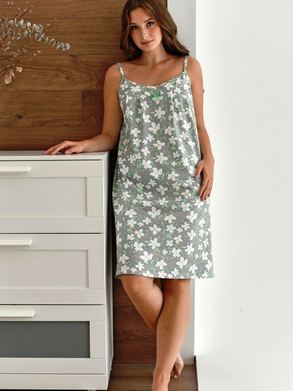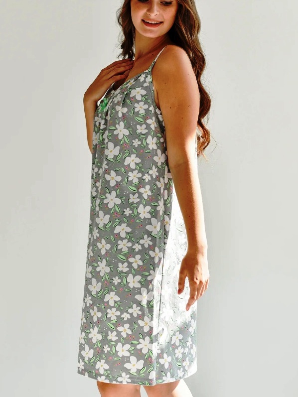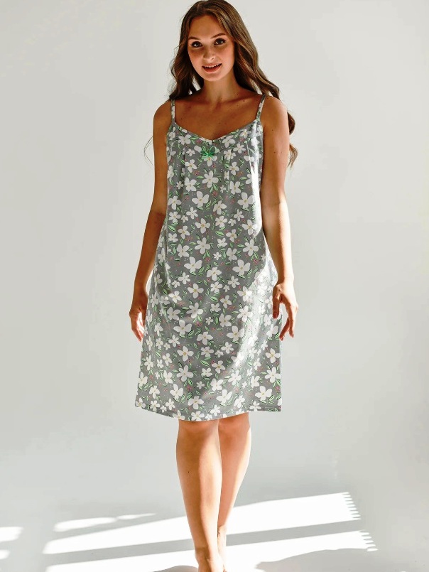 Сорочка ночная женская "Полянка" (тонкая бретель) (графит)