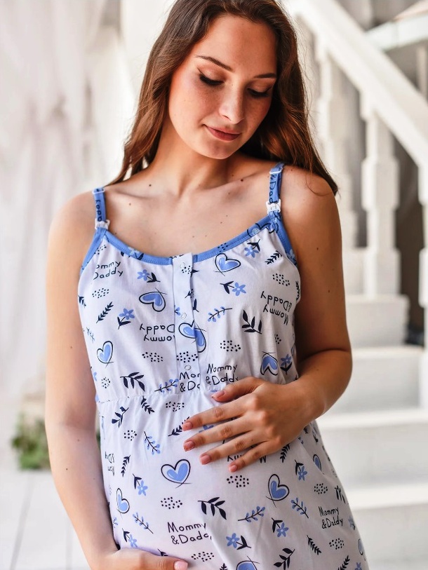 Сорочка ночная женская "Скоро мама" (голубой б/з)