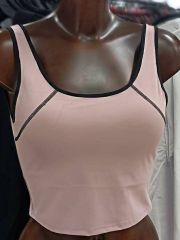женский спортивный топ-майка на широких бретелях. Чашечки пришиты. Состав: 74% полиамид 26% эластан