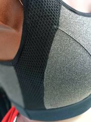 женский спортивный топ (бра) из гладкого хлопка на широких бретелях, низ топа с пришивной мягкой контрастного цвета (черного) резинкой с логотипом Fashion sports. Чашечки и перфорация для вентиляции. Состав: 95% хлопок, 5% эластан