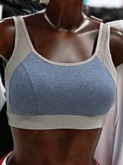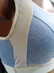 женский спортивный топ (бра) из гладкого хлопка на широких бретелях, низ топа с пришивной мягкой контрастного цвета (серый) резинкой с логотипом Fashion sports. Чашечки и перфорация для вентиляции. Состав: 95% хлопок, 5% эластан