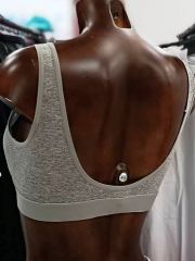 женский спортивный топ (бра) из гладкого хлопка на широких бретелях, низ топа с пришивной мягкой контрастного цвета (серый) резинкой с логотипом Fashion sports. Чашечки и перфорация для вентиляции. Состав: 95% хлопок, 5% эластан