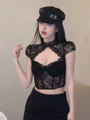 Европейский и американский стиль сексуальный полый кружевной рыбья кость с узкой талией приталенный трансграничный модный съемный нагрудный жилет с запахом на груди