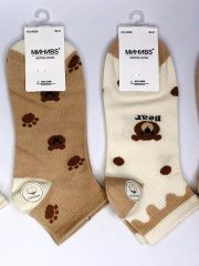 УКОРОЧЕННЫЕ НОСКИ ХЛОПОК МИНИBS HE08 "Мишки" (цвет белый и беж)