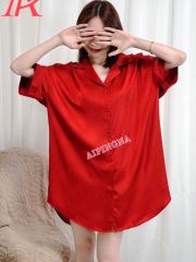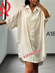 Женская шелковая рубашка длинная AIPINGNA 18082 (беж)
