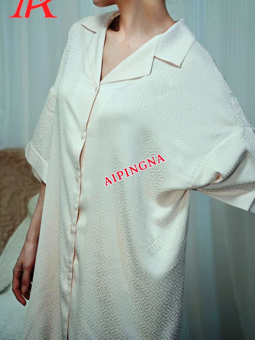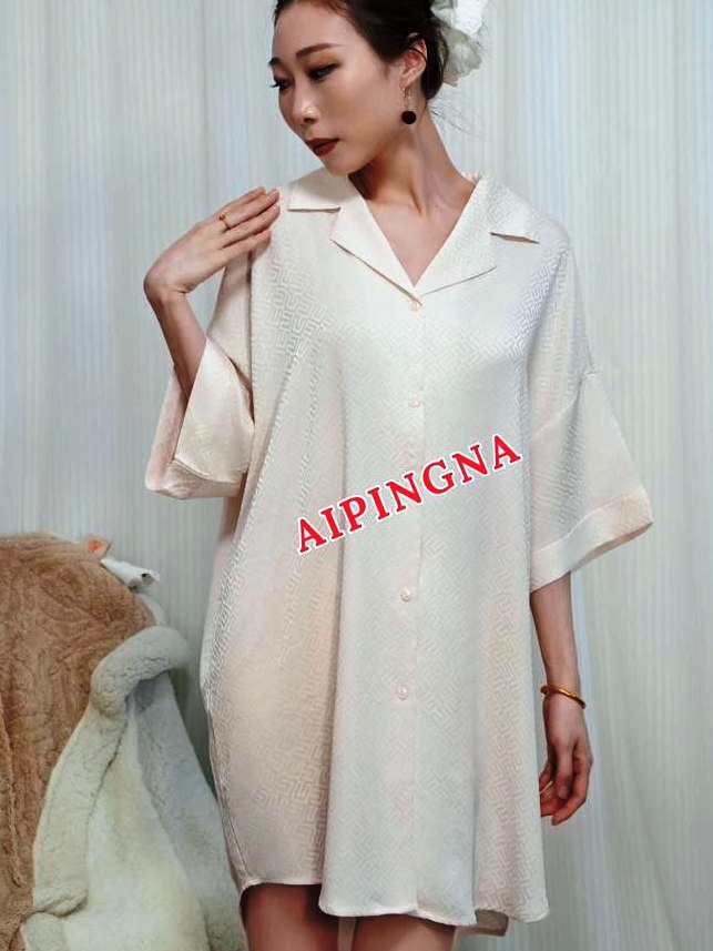 Женская шелковая рубашка длинная AIPINGNA 18082 (беж)