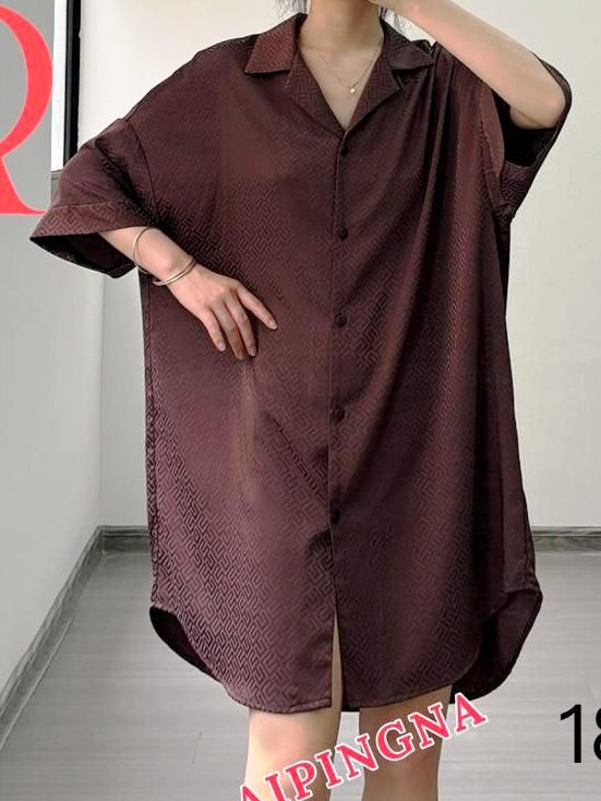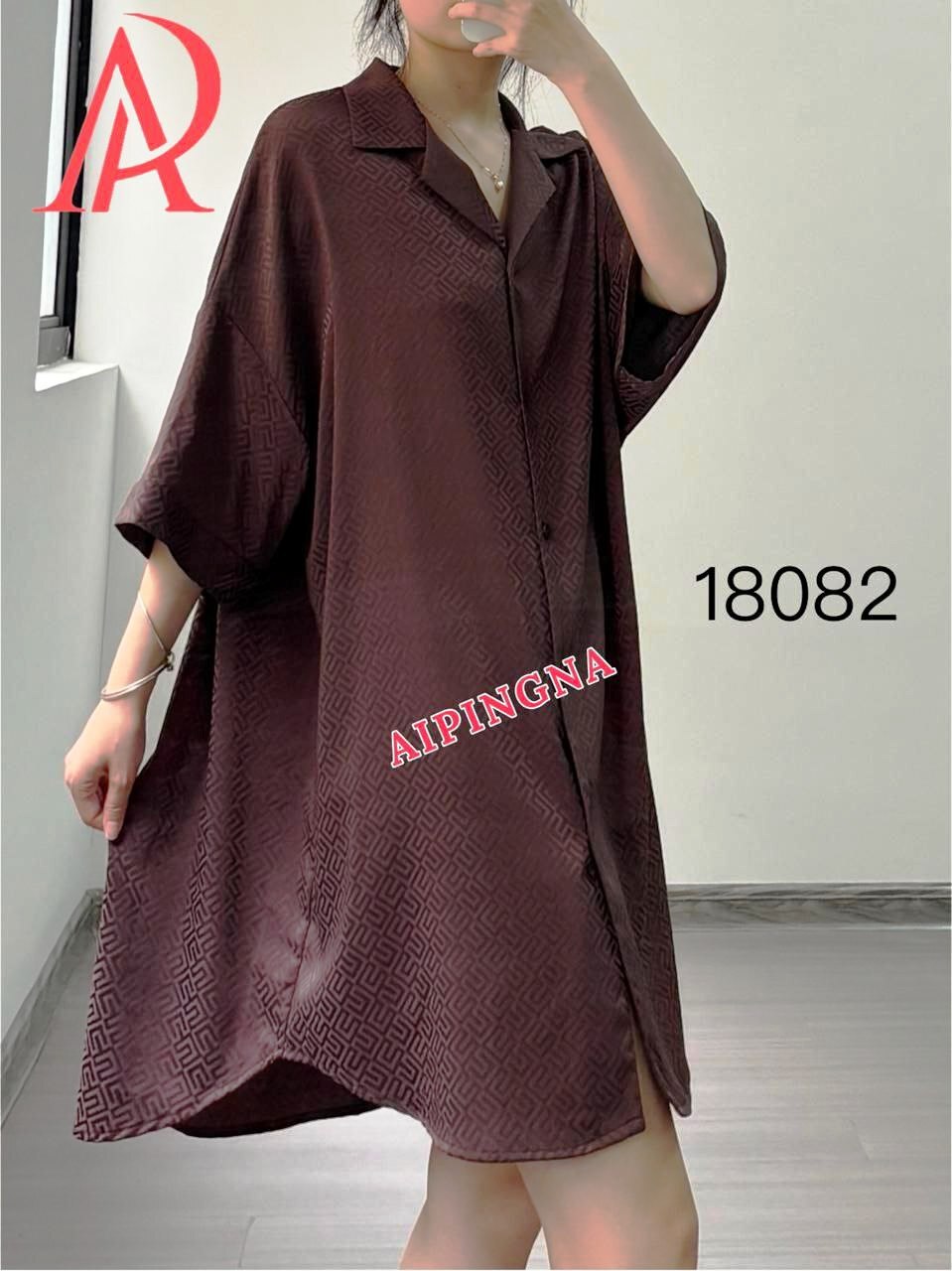 Женская шелковая рубашка длинная AIPINGNA 18082 (шоколад)