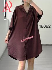 Женская шелковая рубашка длинная AIPINGNA 18082 (шоколад)