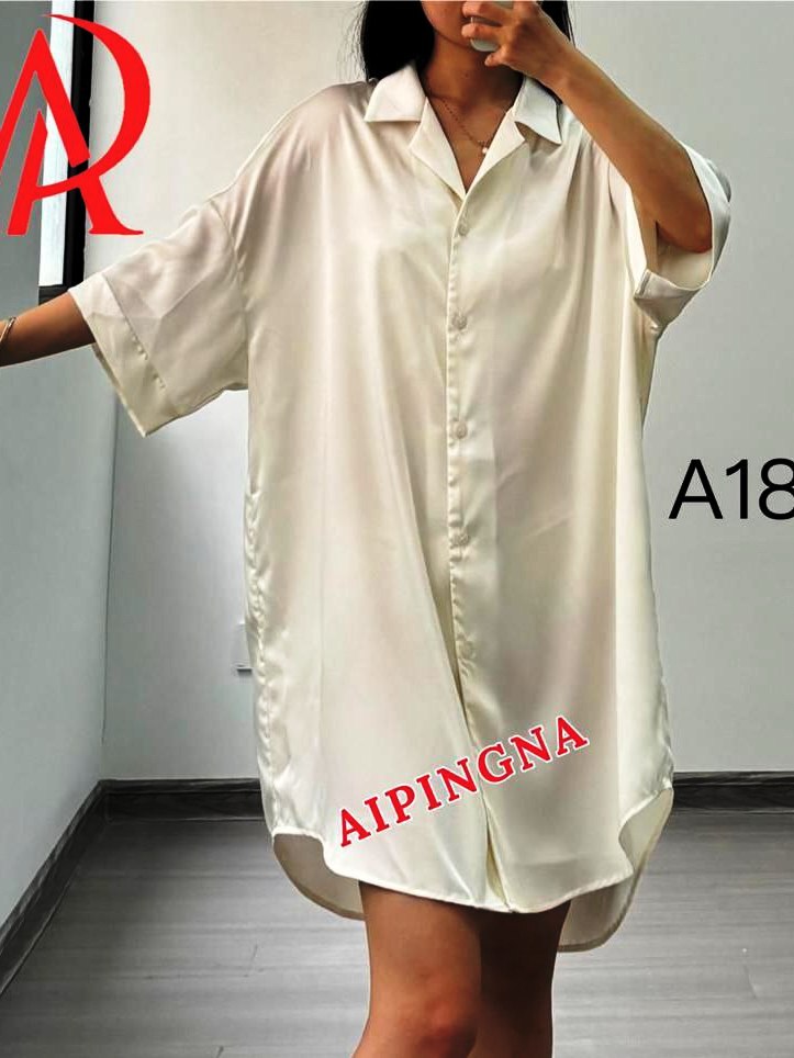 Женская шелковая рубашка длинная AIPINGNA 18083 (молочный)
