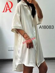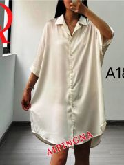 Женская шелковая рубашка длинная AIPINGNA 18083 (молочный)