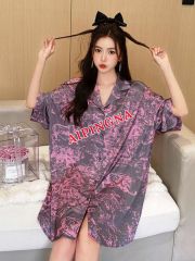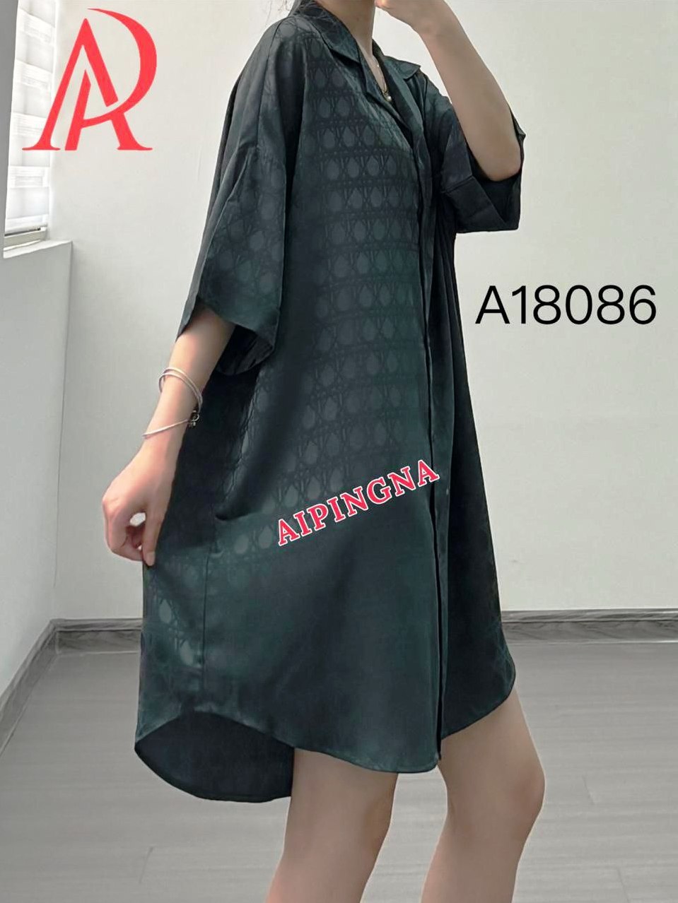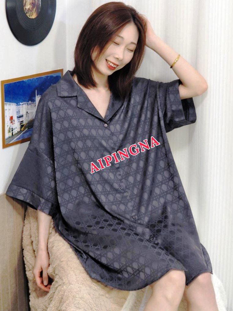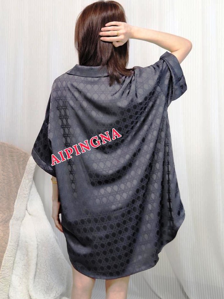 Женская шелковая рубашка длинная AIPINGNA 18086 (т.серая)