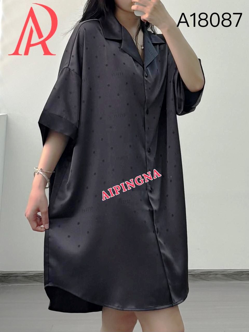 Женская шелковая рубашка длинная AIPINGNA 18087 (черная)