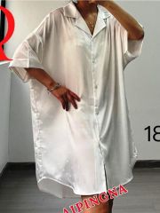 Женская шелковая рубашка длинная AIPINGNA 18087 (6елая)
