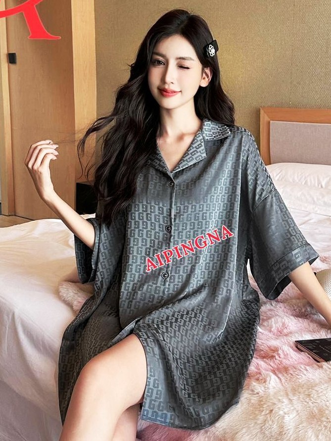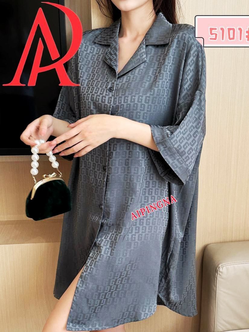 Женская шелковая рубашка длинная AIPINGNA 5101(серая)