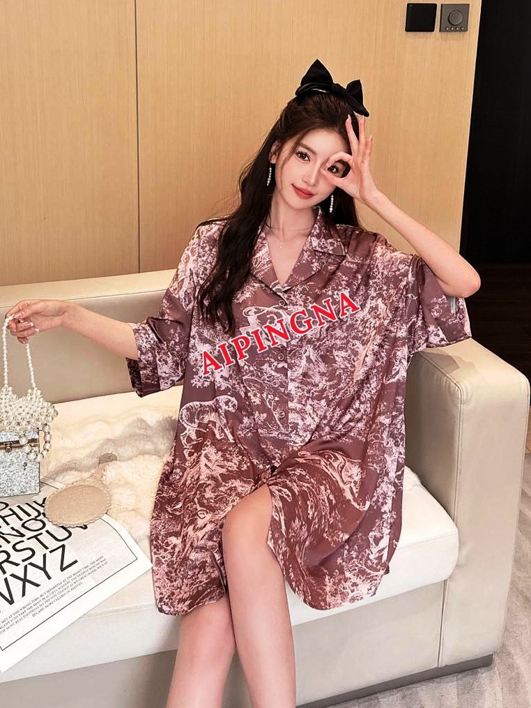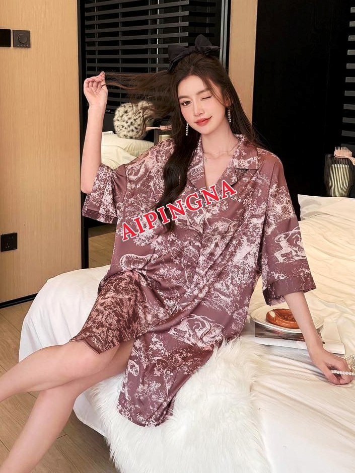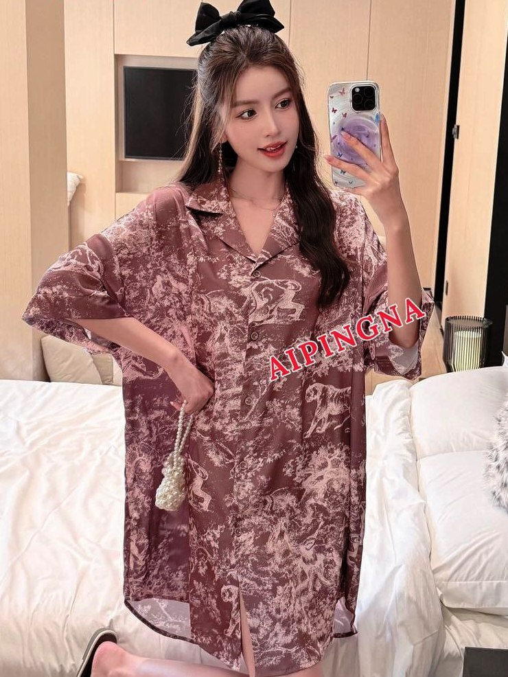 Женская шелковая рубашка длинная AIPINGNA 5120 (бежево-коричневый мрамор)