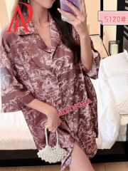 Женская шелковая рубашка длинная AIPINGNA 5120 (бежево-коричневый мрамор)