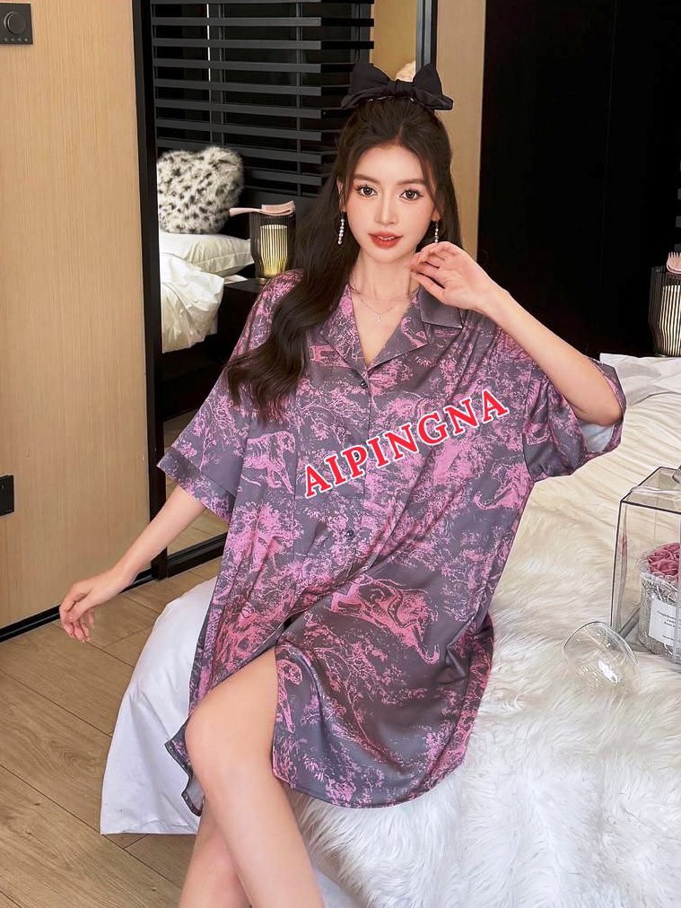 Женская шелковая рубашка длинная AIPINGNA 5120 (розовый мрамор)