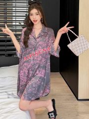 Женская шелковая рубашка длинная AIPINGNA 5120 (розовый мрамор)