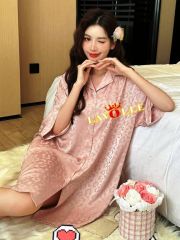 Женская шелковая рубашка длинная AIPINGNA 5201(розовый)