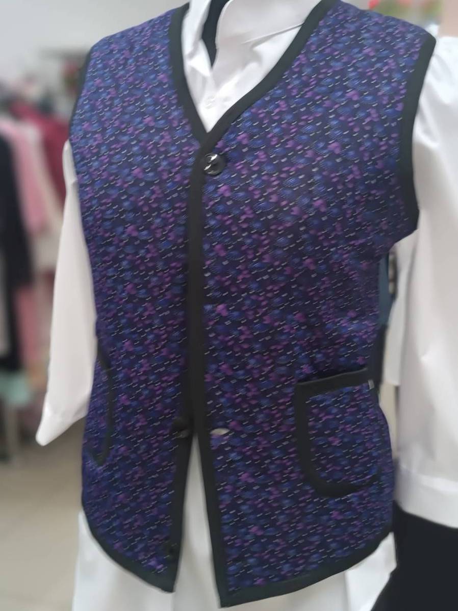 Жилет стеганный утепленный (фиолет. -синие цветы)